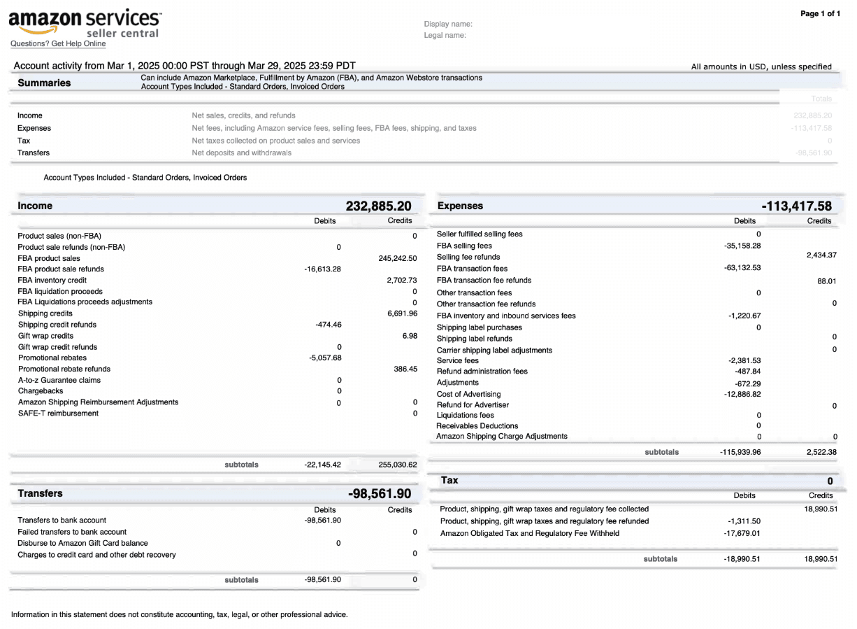 Normalize revenue and fees by SKU, ASIN, country, or entity to generate ERP-aligned reports.